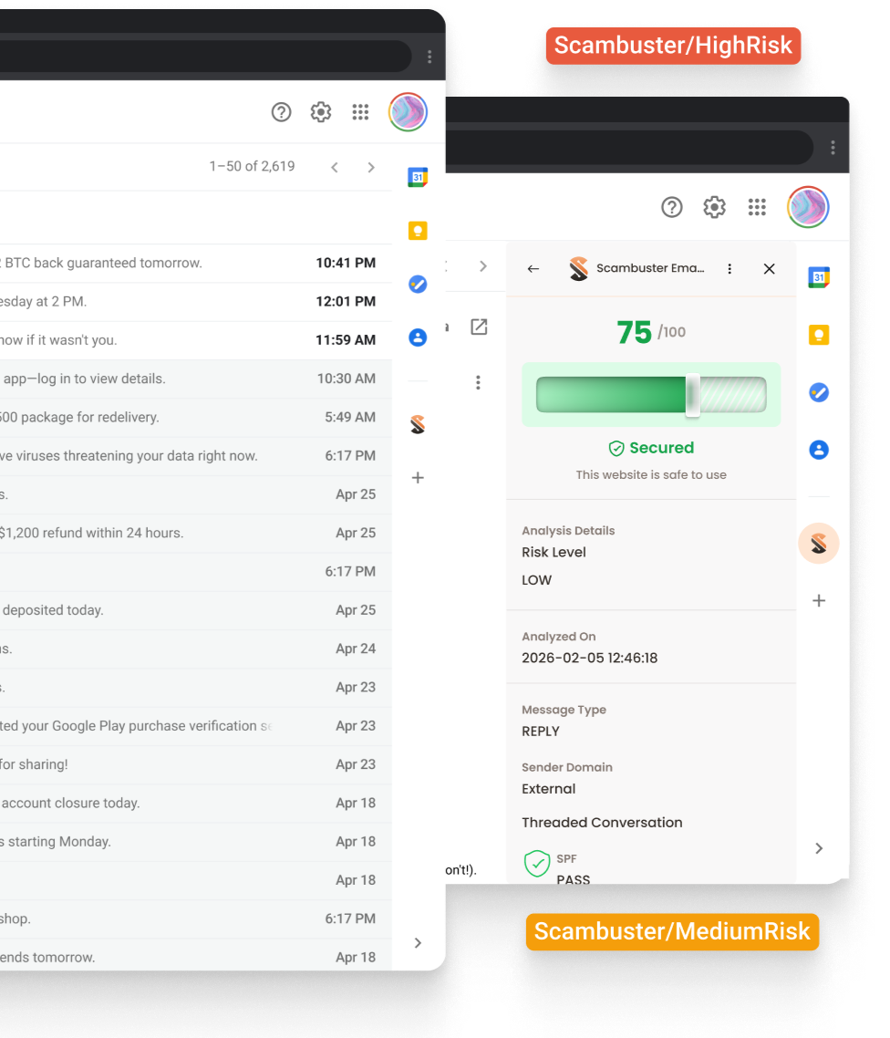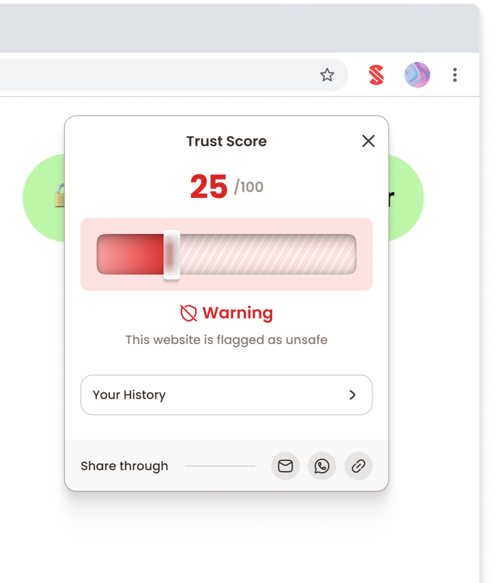 Avoid scams before they reach you. Verify suspicious links, websites, and emails instantly while browsing, shopping, and interacting online.