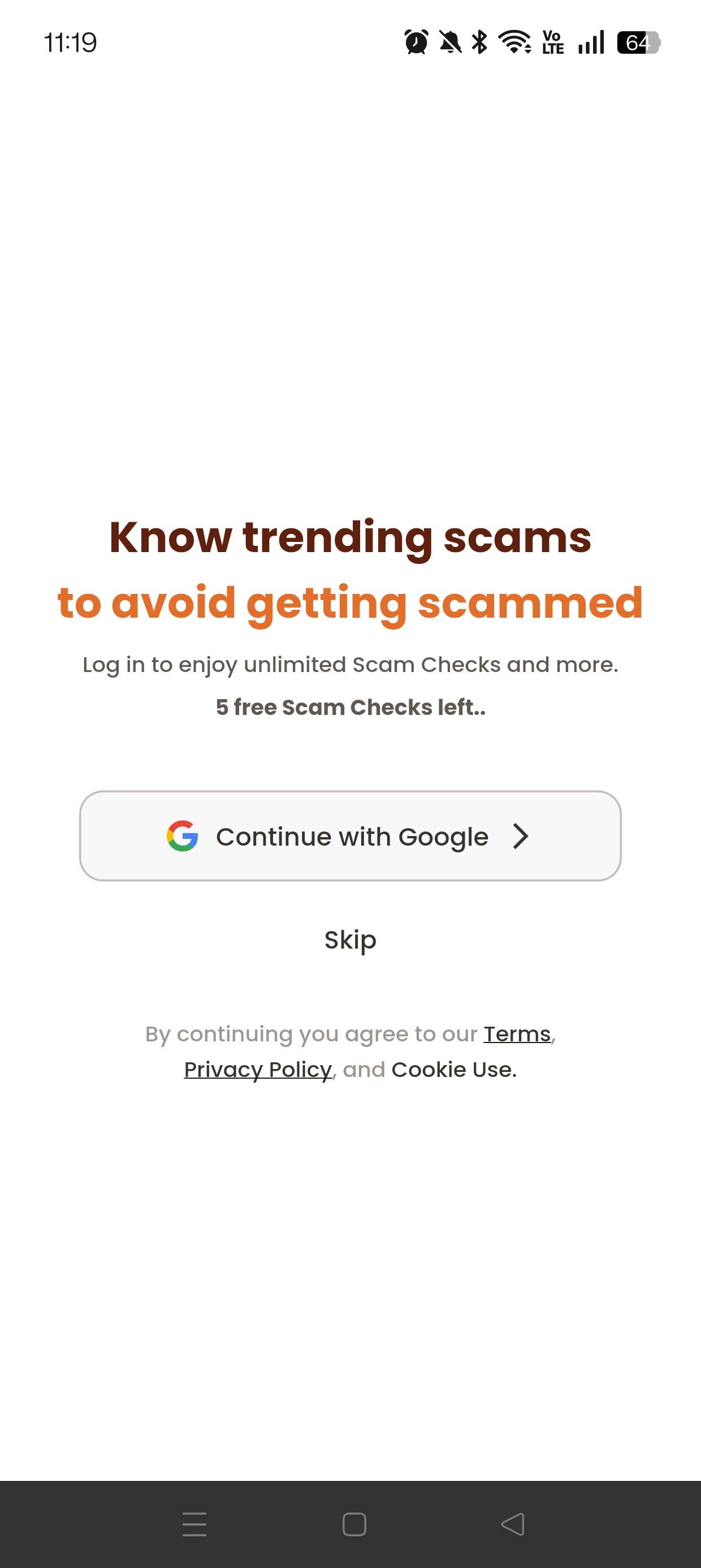 You can run upto 5 scam checks without signing in, so you can verify instantly when something feels off.