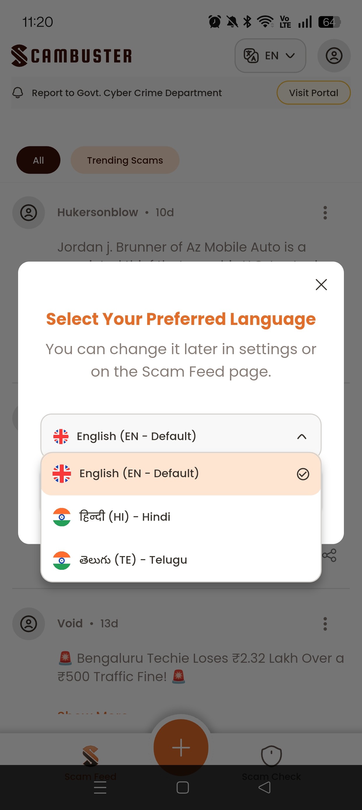 Explore scam stories posted by other users as well! The Scam Feed lets you explore real scam stories shared by other users.